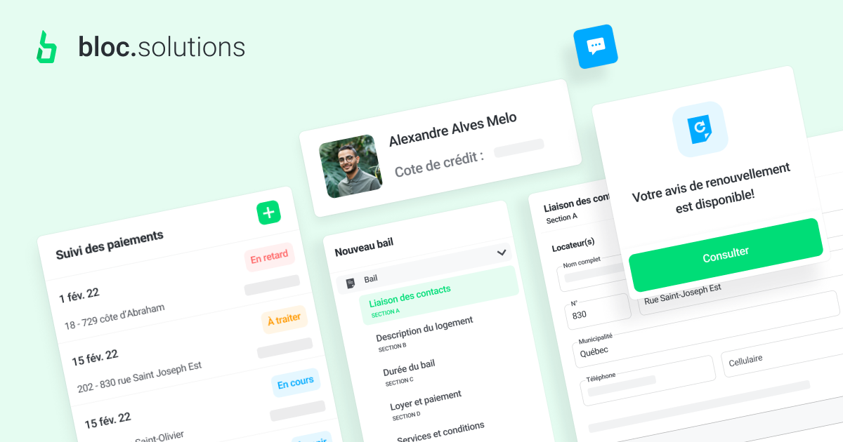 Grâce à Bloc Solutions, vous pouvez désormais accéder à une gestion locative personnelle efficace et à distance. Notre plateforme n’est pas uniquement là pour signer un bail électronique! Vous pouvez y gérer vos candidatures de locataires, suivre les paiements, faire des enquêtes de prélocation, assurer des communications certifiées et bien plus encore. Créez-vous un espace en quelques clics et commencez à gérer vos logements! N’oubliez pas aussi de consulter le site du Tribunal Administratif du Logement pour des informations officielles et utiles.